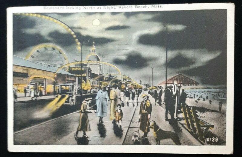 Title (ebay affiliate link): Vintage Postcard Boulevard at Night Revere Beach Massachusetts Amusement Park