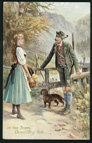Title (ebay affiliate link): PC Dog Dachshund Dackel Teckel Woman Hunter Tyrol Mountains Tuck PC 9312