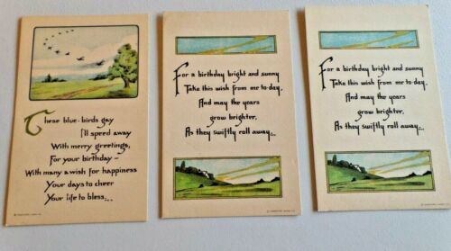 Vintage 3 Birthday Greetings Postcards Unused Sandford Card Co. 6150