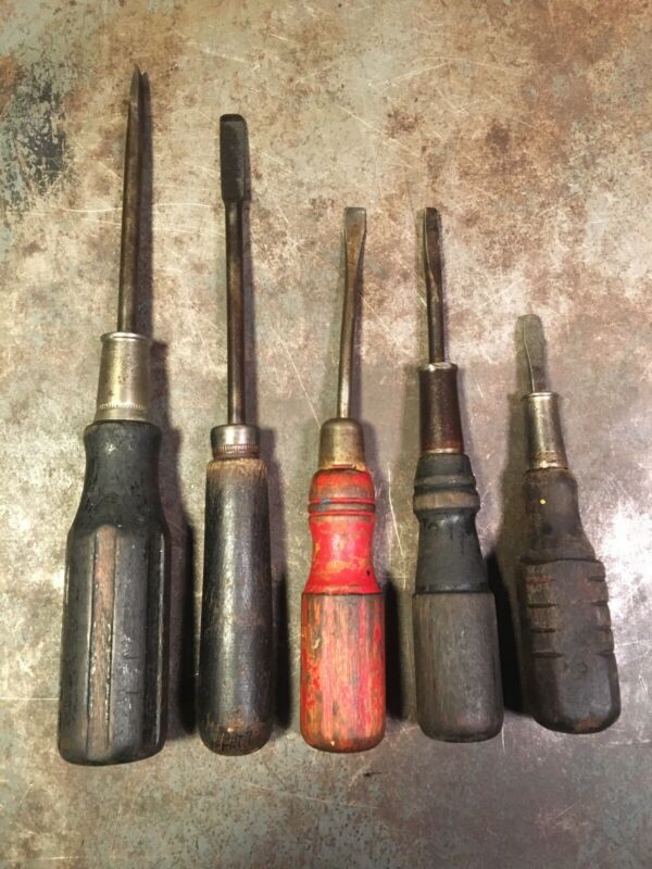 Title (ebay affiliate link): Vintage Screw Drivers Flat Head Wooden Handles Woodworking Hand Tools
