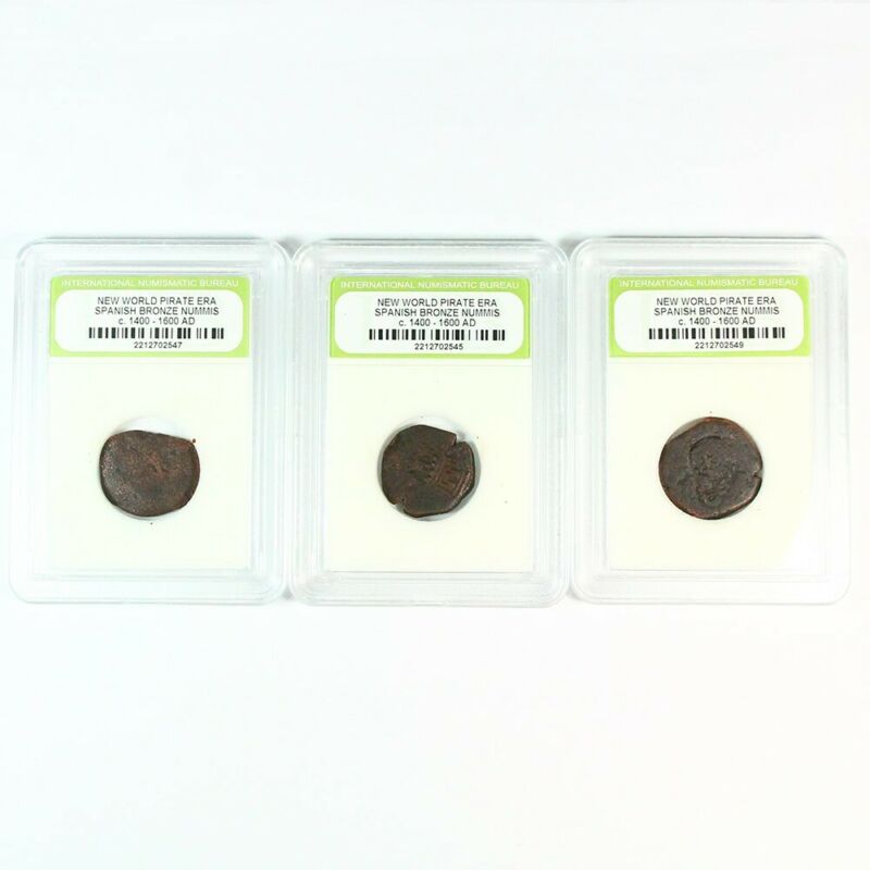 Title (ebay affiliate link): 3 Pirate Era - 1600''s Early America Spanish Bronze Cobs Exact Lot Shown 9155
