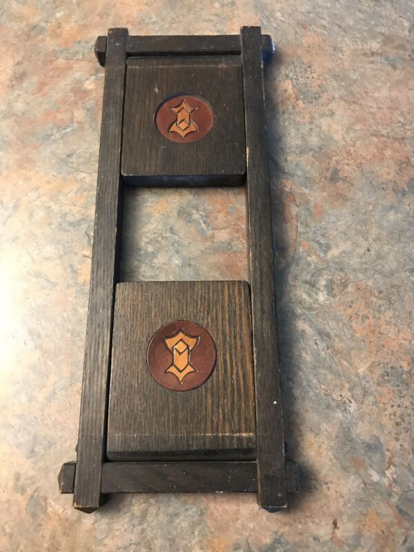 Antique Arts & Crafts Tiger Oak Folding Book Shelf Tabletop Mission Bookshelf