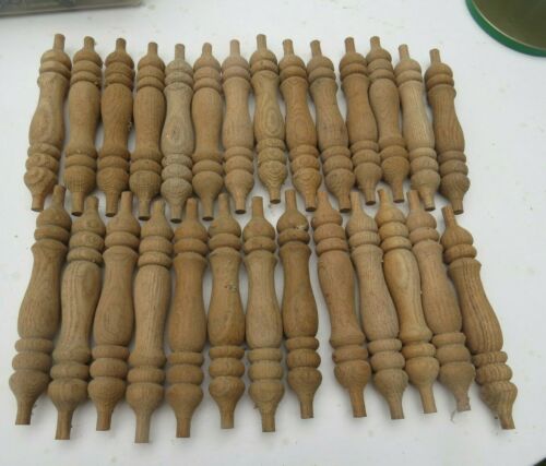 27 Vintage Turned Oak Spindles Dowels 8"