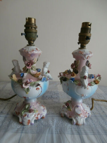Title (ebay affiliate link): PAIR ORNATE VINTAGE POTTERY TABLE LAMPS: WITH FLOWERS/CHERUBS: FROM ITALY 1950S