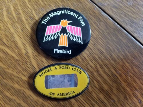 Vintage Ford Model A Badge and Pontiac Firebird Button