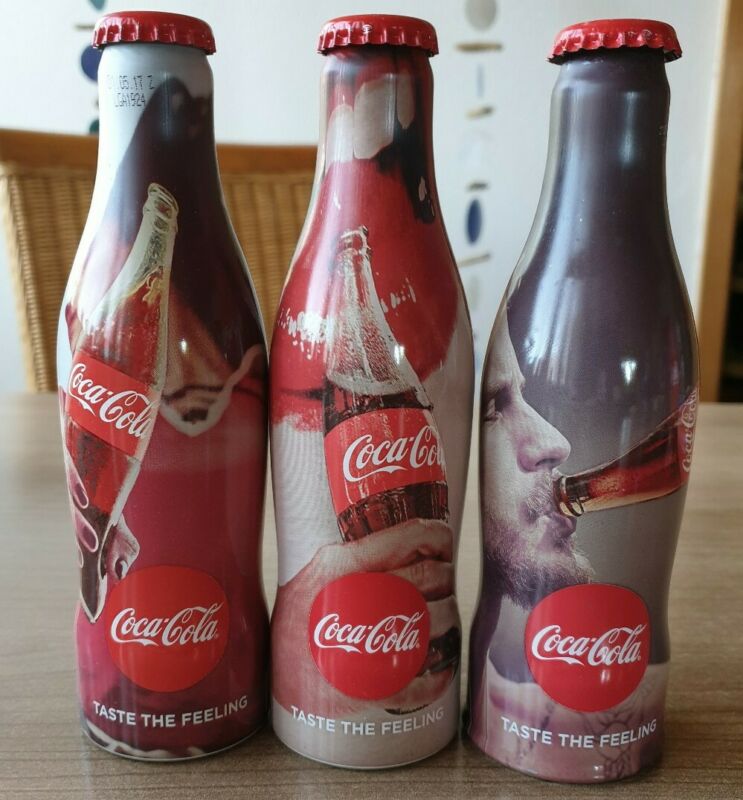 Nice Coca Cola alu Bottles set from Austria. 3 Empty bottles. Taste the Feeling