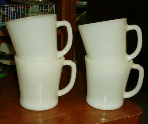 Title (ebay affiliate link): 4 VTG. FIRE-KING ANCHOR HOCKING D HANDLE MUGS WHITE MILK GLASS