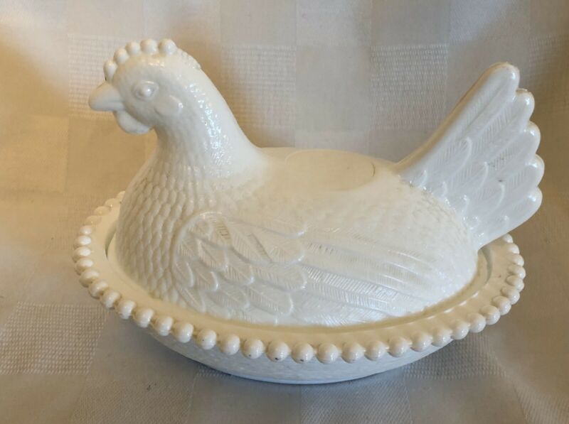 Title (ebay affiliate link): Vintage White Milk Glass Hen On A Nest Kitchen Farm and Country Decoration