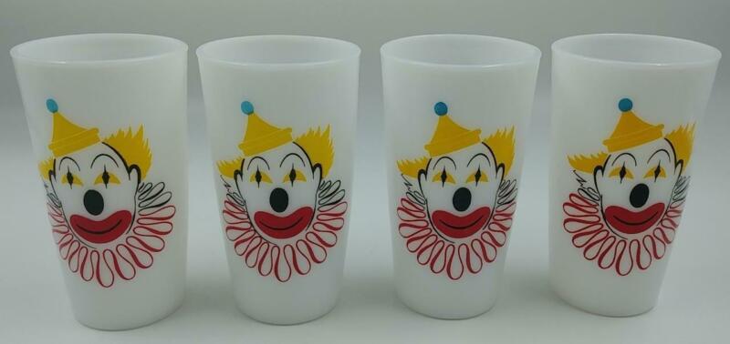 Vintage 1950s Hazel Atlas Milk Glass Clown Face Drinking Tumbler 10oz - Set of 4