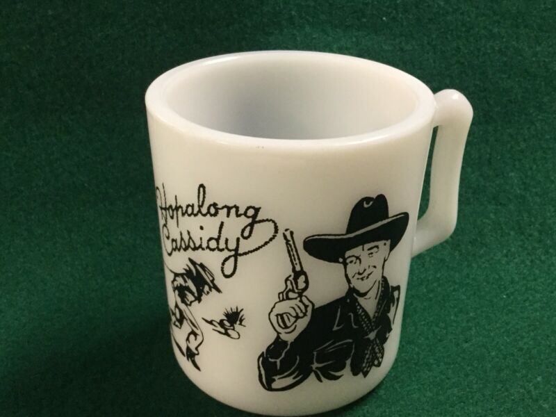 Vintage HOPALONG CASSIDY MUG Black Stenciled Milk glass