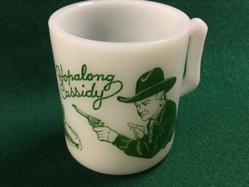 Title (ebay affiliate link): Vintage Hopalong Cassidy Child Mug 1950''s White Milk glass Green design