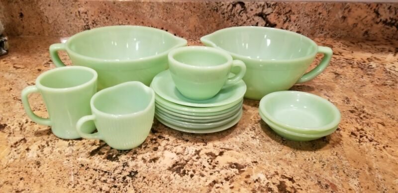 Title (ebay affiliate link): Jadeite jadite Lot Batter Bowl Saucers Cup Mug Creamer Berry Bowl None Perfect