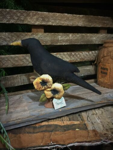 Title (ebay affiliate link): *Primitive 7x10in CROW W/FLOWERS BOBBIN FABRIC HANDMADE Country old rusty doll*