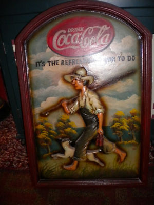 Title (ebay affiliate link): VINTAGE COCA COLA SIGN WOODEN HAND PAINTED MAN FISHING