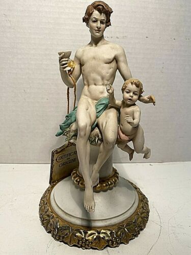 Title (ebay affiliate link): CAPODIMONTE BENACCHIO TRIADE FIGURINE OF FATHER W/ WINE & CHILD ON PEDESTAL