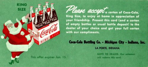 FREE KING SIZE CARTON OF COCA COLA 1959 LAPORTE, INDIANA 61 years old