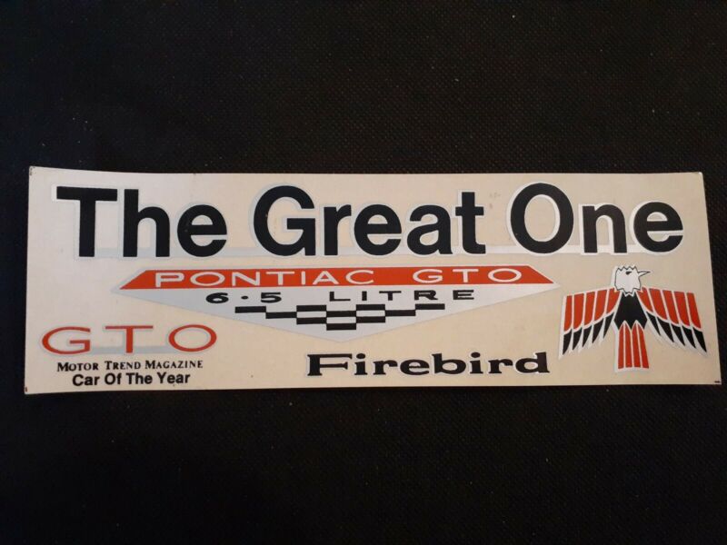 Title (ebay affiliate link): Vintage ~ The Great One Pontiac GTO 6.5 Litre Firebird Sticker/Decal