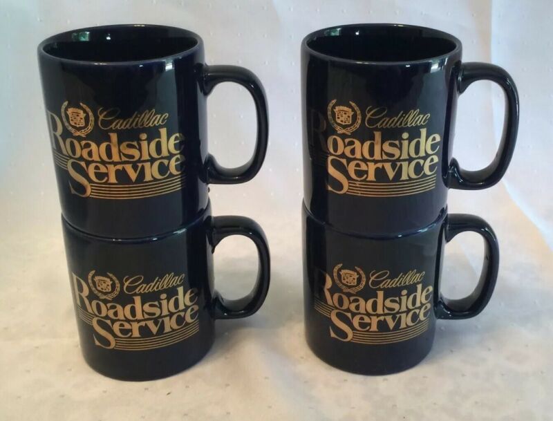Title (ebay affiliate link): 4 Vintage CADILLAC ROADSIDE SERVICE Coffee Mugs COBALT & GOLD KILN CRAFT England