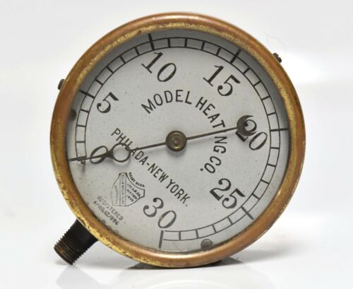 VINTAGE INDUSTRIAL A.M.Co. BRASS GAUGE MODEL HEATING CO. STEAMPUNK