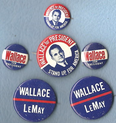 Lot of 6 Wallace/ Lemay Campaign Buttons Pins Pinbacks