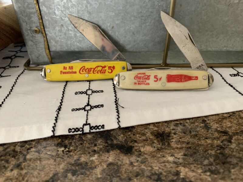 2 Vintage Coca Cola World Fair 1933 Chicago Double Blade Pocket Knife RARE!