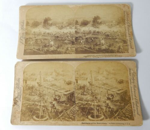 Title (ebay affiliate link): 2 CIVIL WAR MEADe''S HOSPITAL GETTYSBURG COLOR GUARD UNDERWOOD STEREOVIEW CARD