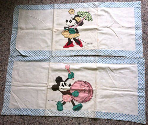 Title (ebay affiliate link): Vintage APPLIQUE DISNEY MICKEY MINNIE MOUSE BLUE BORDER COTTON RUNNERS