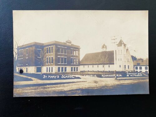 Title (ebay affiliate link): cr1910 Real Photo Postcard: ST. MARY''S SCHOOL & CHURCH, NEWMARKET NH