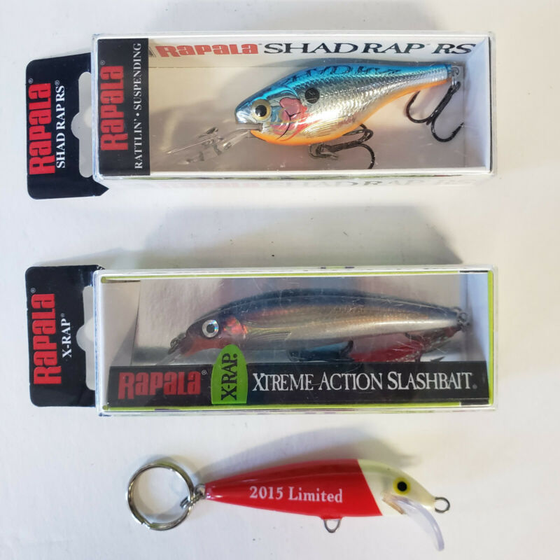 Title (ebay affiliate link): BUNDLE OF RAPALA FISHING LURES NEW IN BOXES ORIGINAL X-RAP SHAD RAP RS KEY CHAIN