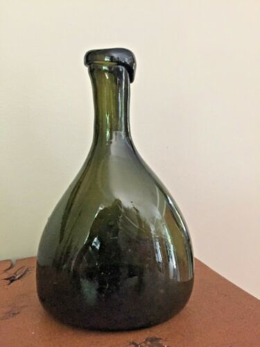 Title (ebay affiliate link): VTG Crude Odd Shape Green Glass Bottle Hand Blown Open Pontil Large Air Bubbles