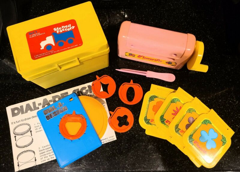 Title (ebay affiliate link): 1980''s Art Toys Stencil Factory, Flowerific, & Dial-a-Design - Fun for Kids!