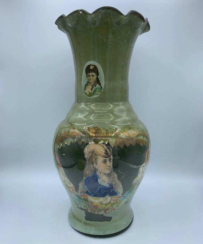 Title (ebay affiliate link): Antique Victorian Trading Card Decalcomania Decaupage Reverse Painted Vase