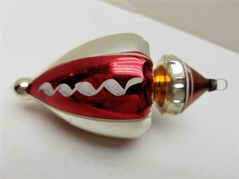 Vintage Glass Blown Top Style Silver & Red Christmas Ornament