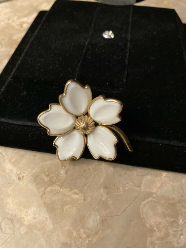 Vintage Trifari Milk Glass Signed Flower Brooch