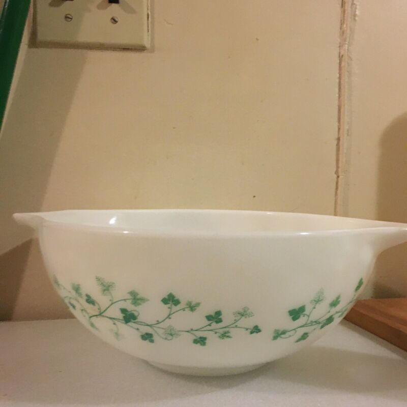 Title (ebay affiliate link): VTG PYREX 444 GREEN IVY CINDERELLA PROMOTIONAL 4 Quart BOWL