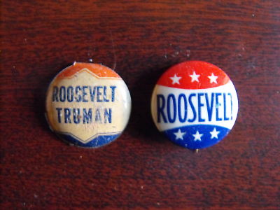 VINTAGE TWO POLITICAL PINS ROOSEVELT & TRUMAN