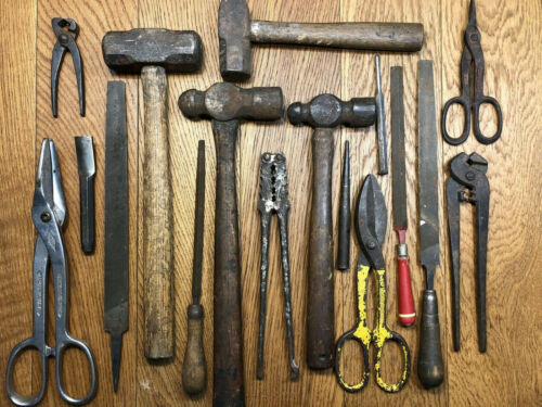 Title (ebay affiliate link): Vintage Lot 15 Large BLACKSMITH METAL TOOLS HAMMERS NIPPERS FILES Anvil Forge