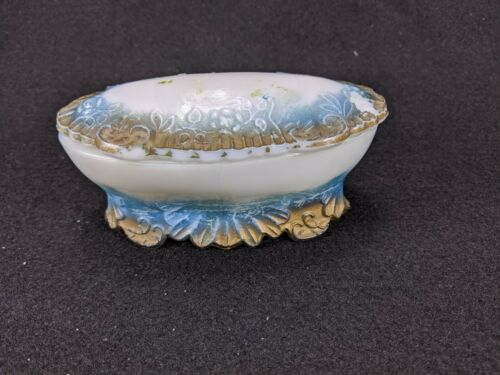 Title (ebay affiliate link): Antique Milk Glass Oval Covered Vanity Dish, Blue, Gold Painted
