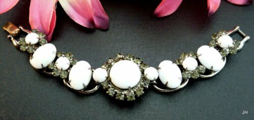 Title (ebay affiliate link): D&E JULIANA CHUNKY WHITE MILK GLASS GRAY RHINESTONE 5-LINK PANEL BRACELET AS-IS!
