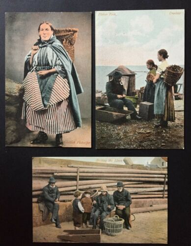Vintage postcards of Dunbar, Scotland- 1800''s to 1900''s fishwife,fisher folk & b