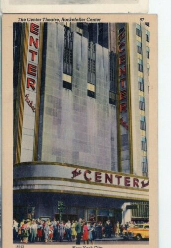 99c NEW YORK CITY LINEN POSTCARD ROCKEFELLER CENTER THEATRE