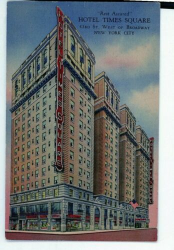 99c NEW YORK CITY POSTCARD HOTEL TIMES SQUARE 1940s LINEN