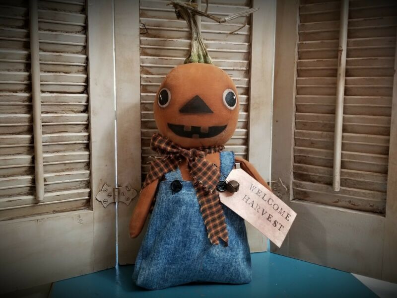 Title (ebay affiliate link): Primitive Halloween Pumpkin Make-do ~ Doll ~ Dried Stem ~