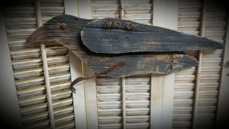 Title (ebay affiliate link): Primitive Handcrafted Wooden Crow Wall Door Hanger ~Folk Art ~ Raven ~