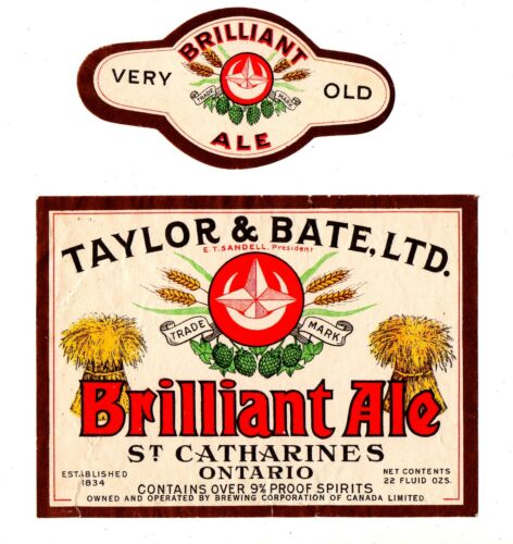 Title (ebay affiliate link): 1900s TAYLOR & BATE BREWERY, ST CATHARINES, CANADA BRILLIANT ALE LABEL SET