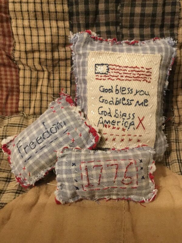 Title (ebay affiliate link): 3 Primitive Tiny Samplers Americana 1776 Antique Homespun Early Quilt Piece