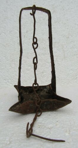 Title (ebay affiliate link): Early Antique Hand Forged 4 Spout Wrought Iron Hanging Betty Grease Lamp Light