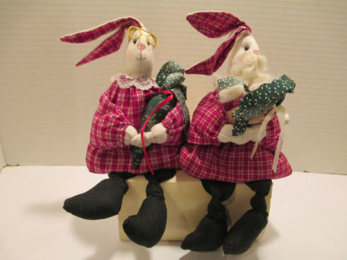 VTG Handmade Primitive Spring Bunny Rabbit Dolls Grammy & Grampy Beanbag Sitting