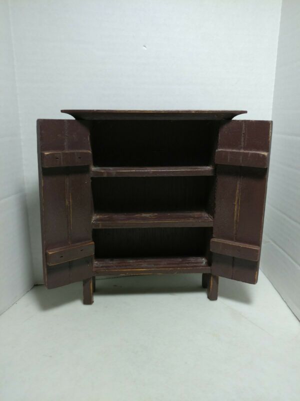 Vintage Rustic Wooden Dollhouse Doll Furniture Hutch 8" tall