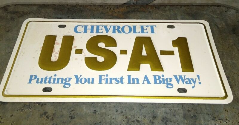Title (ebay affiliate link): U-S-A-1 CHEVROLET PUTTING YOU FIRST IN A BIG WAY! ?1960''s? LICENSE PLATE steel!